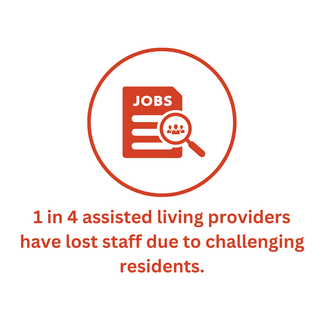A quarter of assisted living providers have lost staff due to challenging residents in their settings.